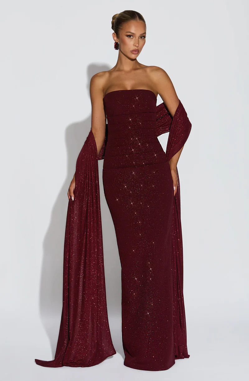 Step into refined glamour with Agnea, a breathtaking gown crafted for moments that demand unforgettable elegance. Designed with a sleek, strapless silhouette, this gown sculpts the body with clean lines and a structured, figure-enhancing fit. Its subtle shimmer catches the light with every movement, while the matching draped shawl adds an extra layer of sophistication and fluidity. Whether you're attending a gala, formal event, or evening celebration, Agnea embodies timeless allure and effortless luxury.