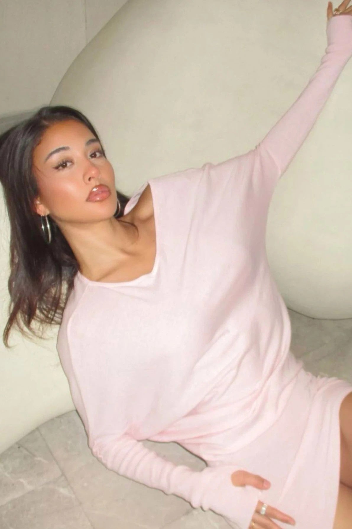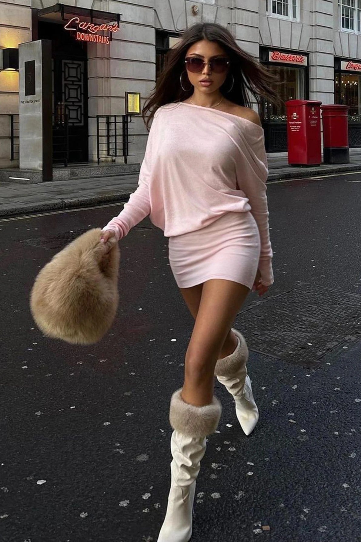 Slip into Amber and discover the sweet spot between laid-back and polished. This mini dress is your new go-to for looking effortlessly put-together, thanks to its silky knit fabric that hugs you just right. The off-shoulder cut flashes a playful hint of skin, while long sleeves keep things sophisticated and balanced. Whether you're grabbing coffee or heading out for the night, Amber delivers that coveted relaxed-glam vibe that makes you feel amazing.
