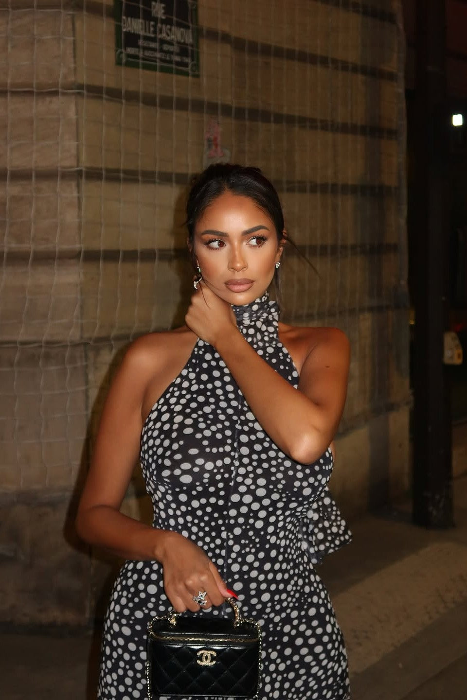 High halter neckline.