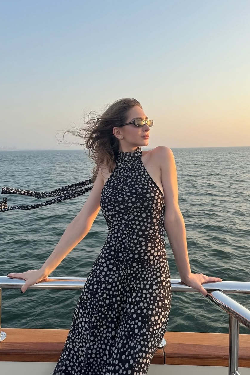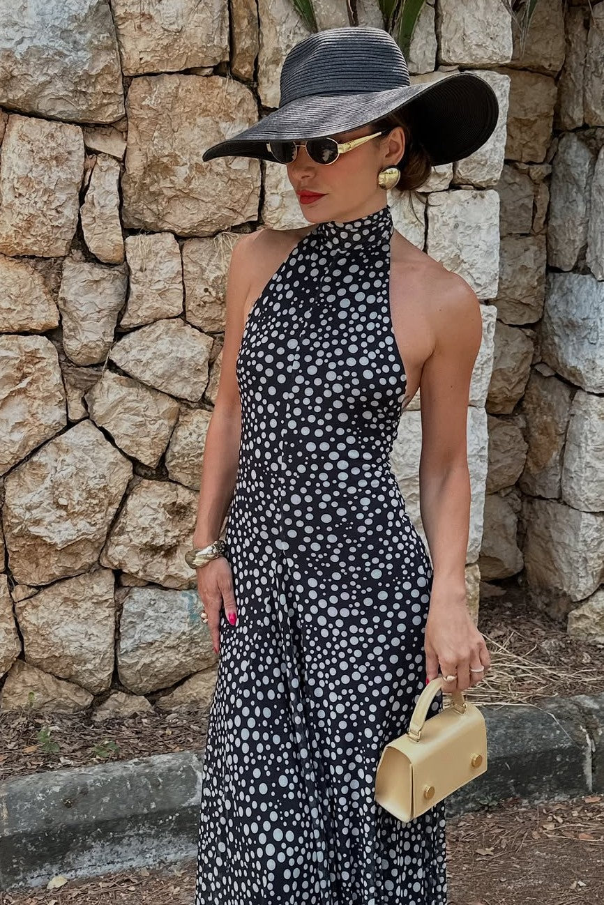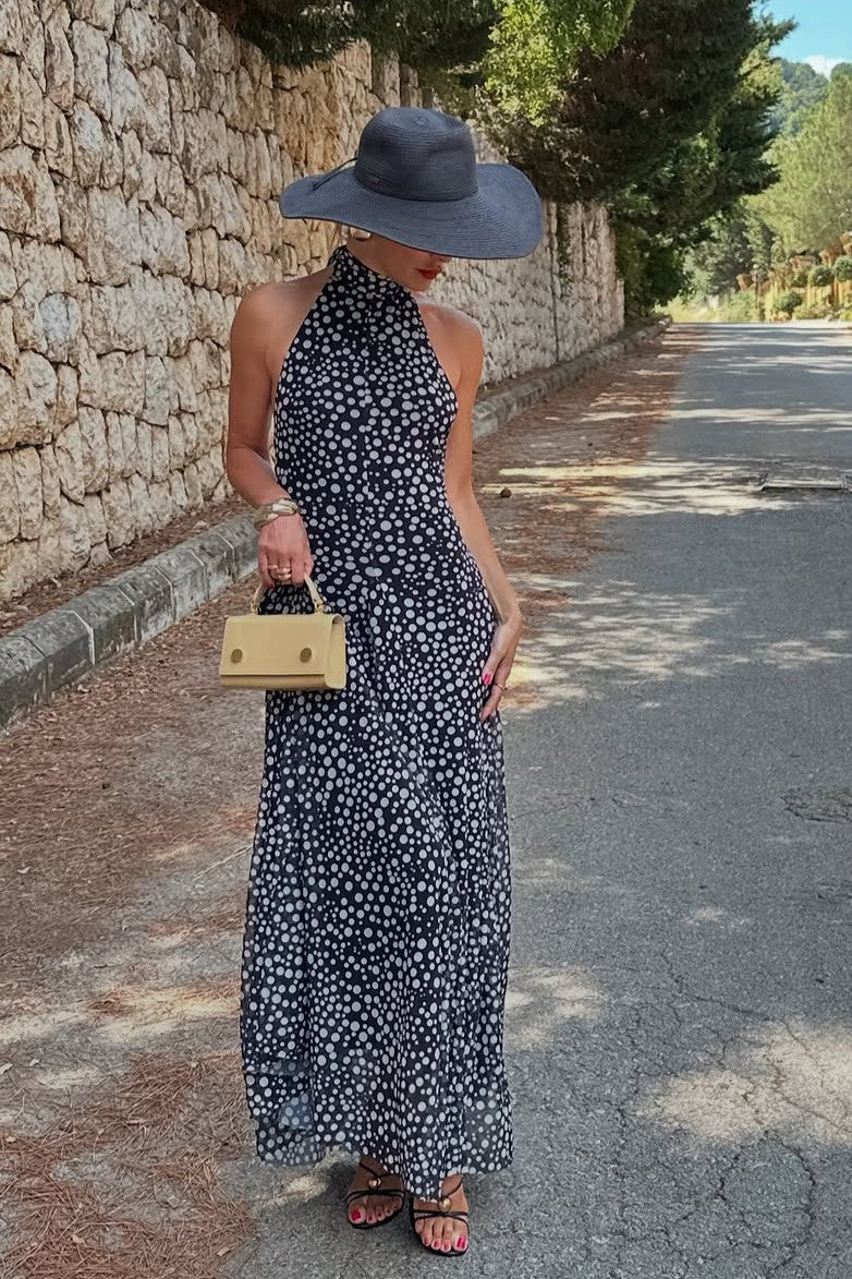 Introducing Aurelia—where timeless elegance meets carefree charm. This maxi dress features a striking halter neckline that flatters your frame, flowing into a graceful silhouette that sways with natural ease. Crafted from sumptuous, featherlight fabric and adorned with delightful prints, Aurelia strikes the perfect balance between refined and relaxed. From leisurely brunches to garden celebrations and everything in between, this dress is your ticket to looking polished while feeling completely at ease.
