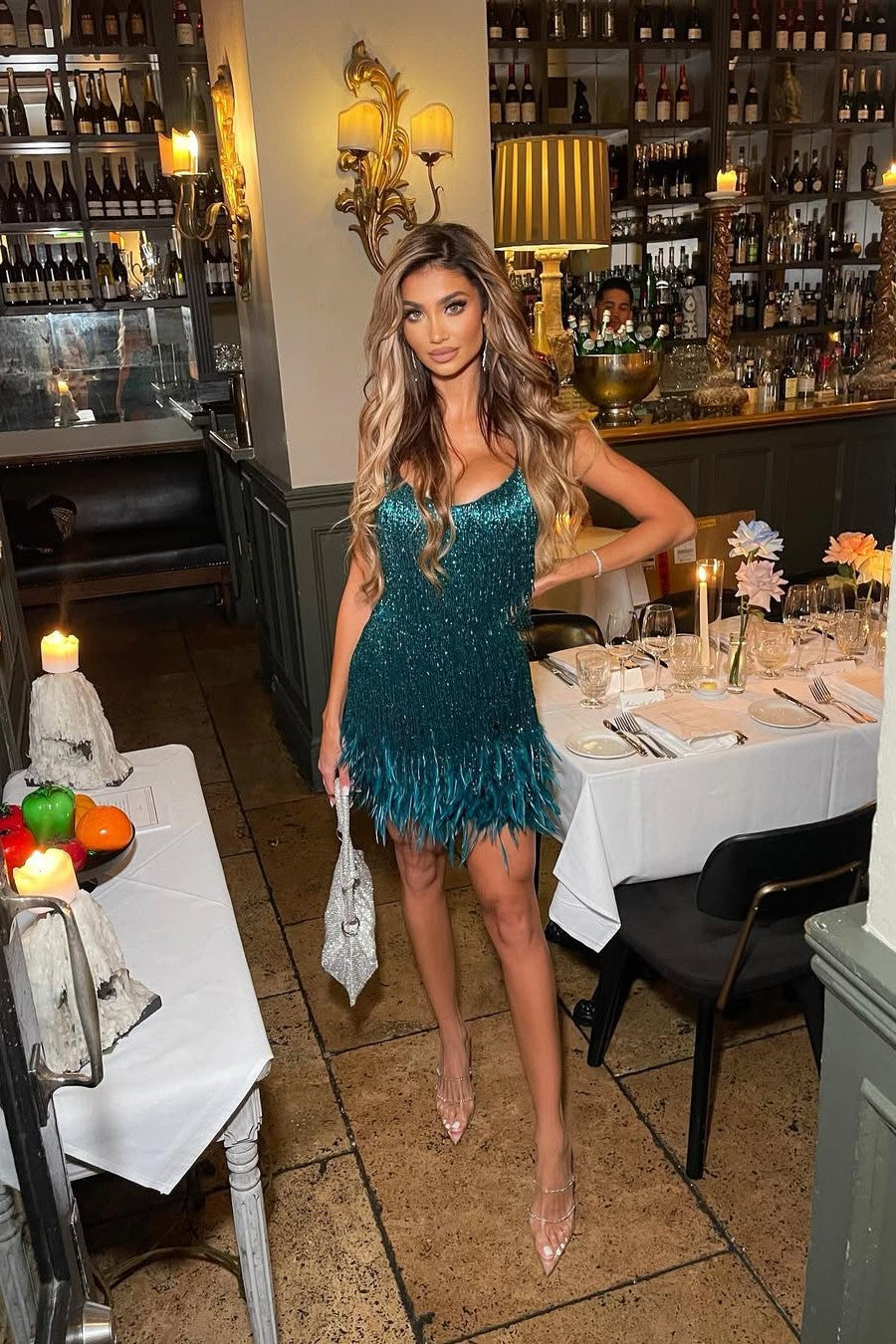 Unleash your glamorous and playful side with Mallory, a dazzling mini dress made for the spotlight. Designed to move beautifully with every step, this piece features a fitted silhouette adorned with cascading fringe that catches the light from every angle. The feather-trimmed hemline adds a flirty finish, making Mallory the perfect choice for parties, celebrations, or nights out where you want all eyes on you.