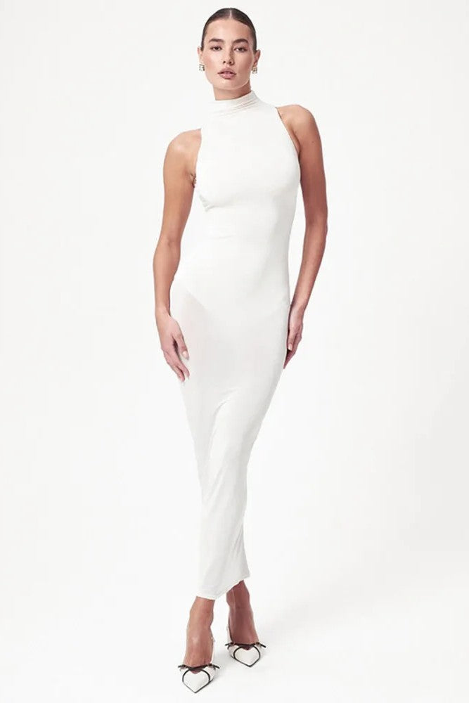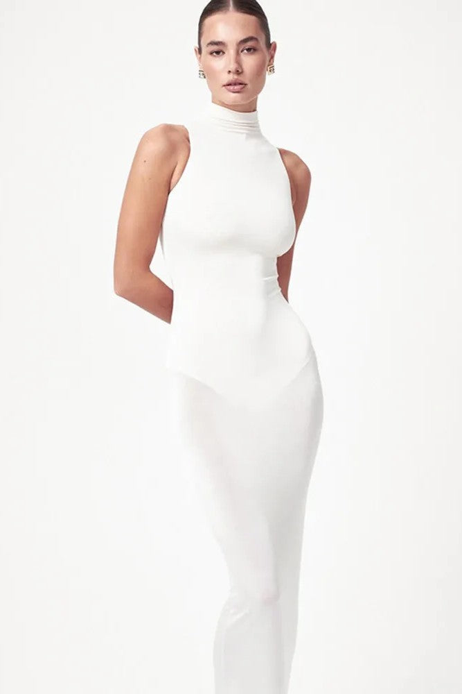 Sleek and minimal, Peanut is a timeless maxi dress designed for understated elegance. With its high neckline and figure-contouring silhouette, this piece is all about clean lines and sophistication. Effortlessly chic and endlessly versatile, Peanut is perfect for evenings when you want to keep it simple yet unforgettable.