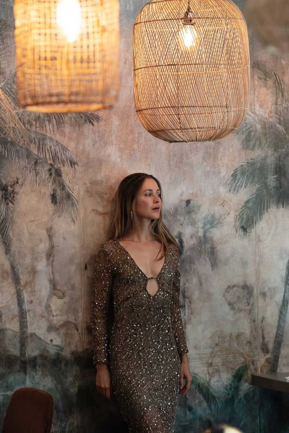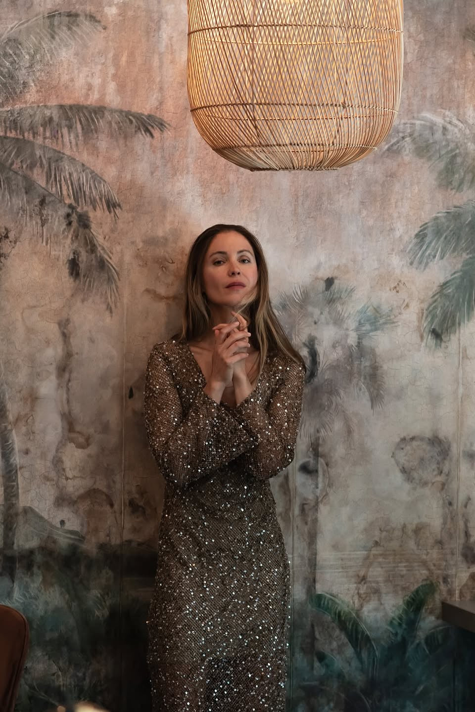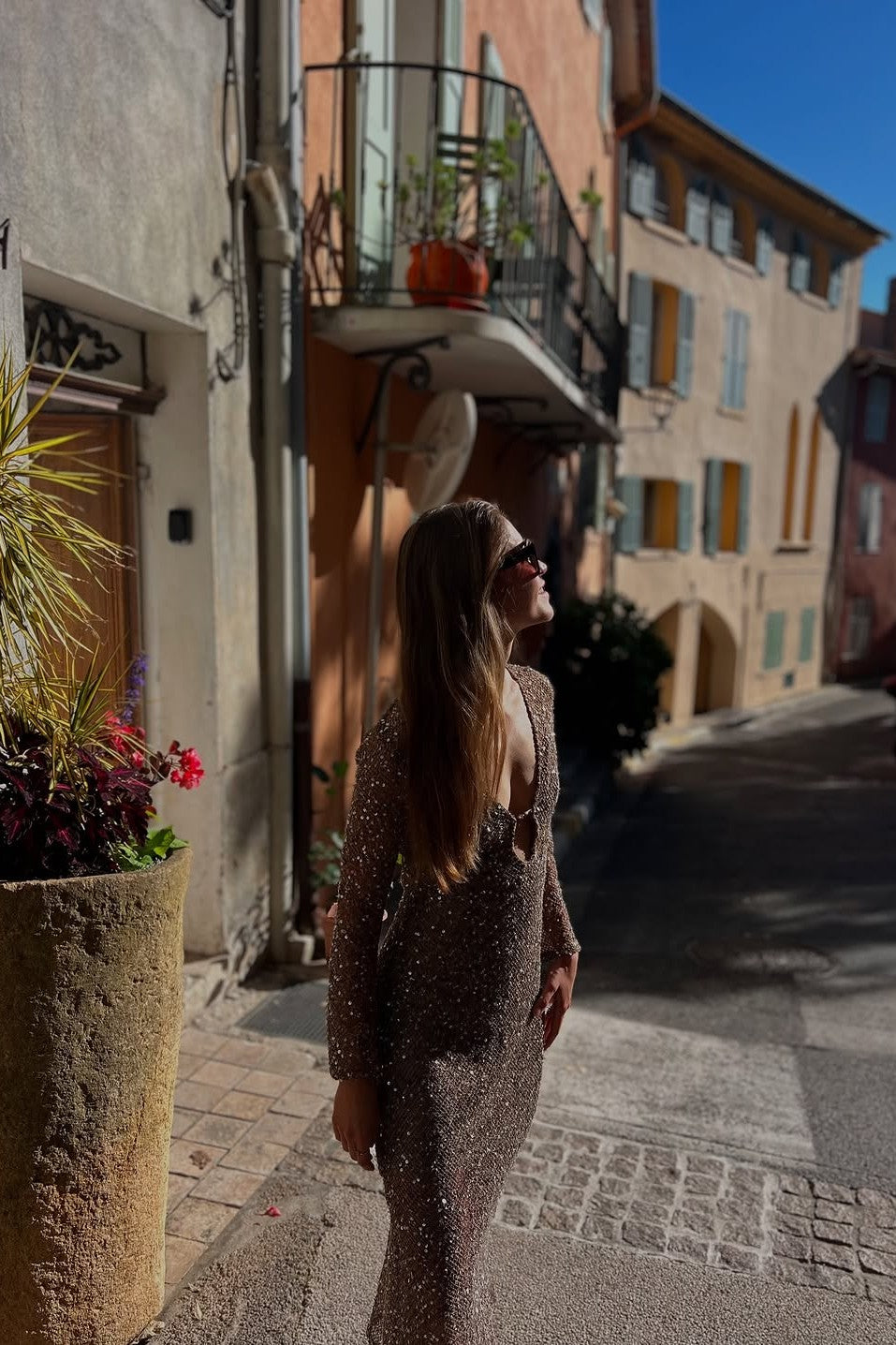 Dazzle with effortless sophistication in Serina, a shimmering midi dress designed to captivate. Crafted from a sheer, sequin-embellished mesh, this piece beautifully catches the light with every movement. Featuring a flattering deep neckline with a subtle keyhole detail and long fitted sleeves, Serina exudes understated glamour. Perfect for evening soirées or upscale events where you want to make a lasting impression.