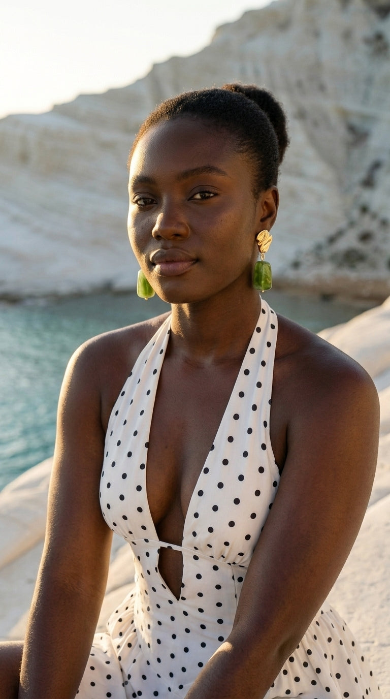 Styling tip: These earrings pair beautifully with swept-back hair and a simple neckline, letting the verdant drops speak for themselves.