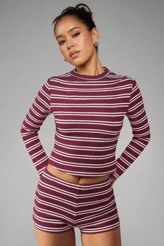 Discover understated elegance with the Negrina Set, a refined two-piece collection that seamlessly transitions from day to night. The tailored long-sleeve top showcases a sophisticated high neckline and gently flared cuffs for contemporary appeal, while coordinating high-waisted shorts create a sleek, body-conscious silhouette. Constructed from supple stretch fabric, this ensemble delivers both comfort and polish—ideal for cultivating an effortlessly polished aesthetic whether you're dressing for evening occasions, elevated casual wear, or striking daytime statements.